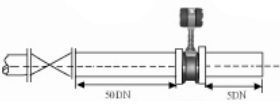 6.調(diào)節(jié)閥的安裝 如果流量計(jì)前后需要安裝調(diào)節(jié)閥,要保證流量計(jì)的前直管段≥25D,后直管段≥5D |