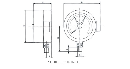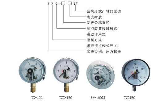 YXC電接點(diǎn)壓力表廣泛應(yīng)用于石油、化工、冶金、電站等工業(yè)部門或機(jī)電設(shè)備配套中測量無爆炸危險(xiǎn)的各種流體介質(zhì)的壓力。通常,電接點(diǎn)壓力表經(jīng)與相應(yīng)的電氣器件(如繼電器及接觸器等)配套使用,即可對(duì)被測(控)壓力系統(tǒng)實(shí)現(xiàn)自動(dòng)控制和發(fā)信(報(bào)警)的目的。